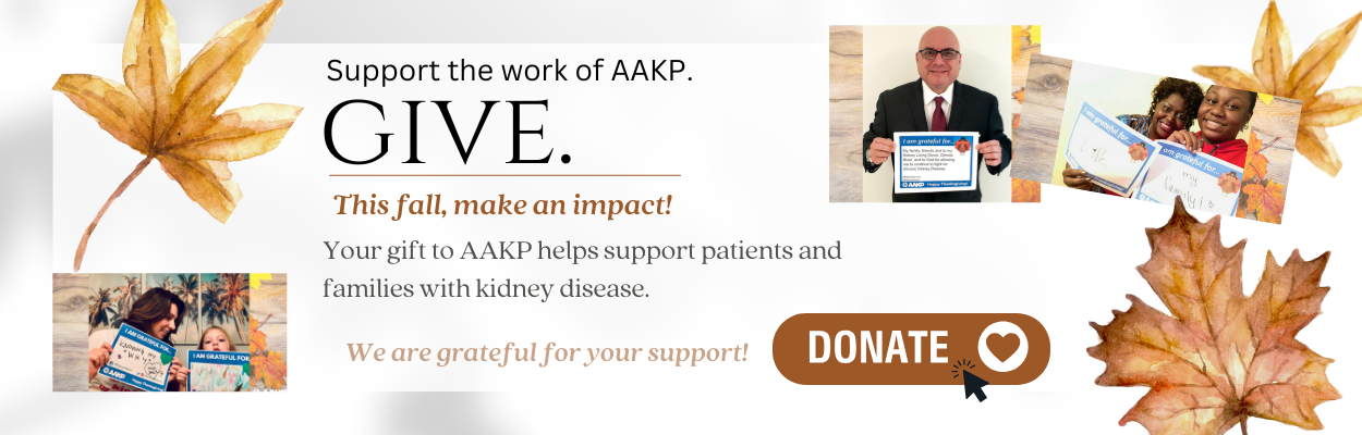 AAKP depends on contributions from YOU to help support the programs and activities of the Association. AAKP has aggressively distinguished itself as the leader in patient-centered education, advocacy, and patient engagement, making AAKP highly respected among fellow non-profit organizations; professional associations; the medical community; renal-industry partners; federal and government agencies; and most importantly, the individuals and families we serve coping with kidney diseases.